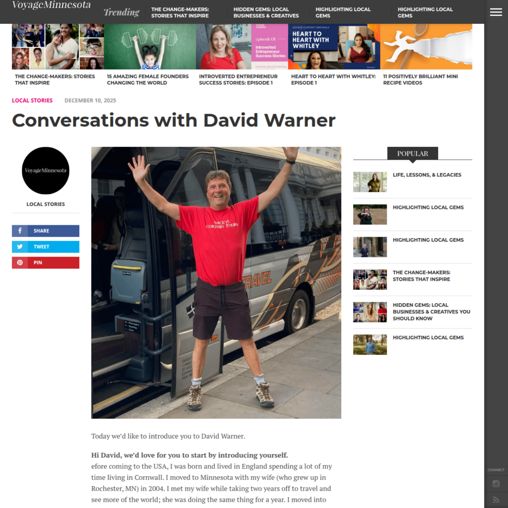 Memorable Cornwall experience I have gone with David on each of his itineraries and highly recommend both. David is very detail oriented and he introduces you to the best of Cornwall and keeps it fun and even-paced. Plan on meeting interesting people too…. If there is ever an itinerary 3… I will be there!!!